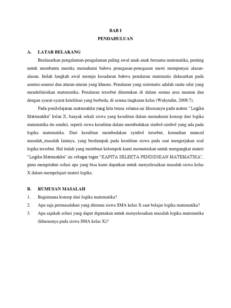 Makalah Kapita Selekta Logika Matematika Yang Benar.