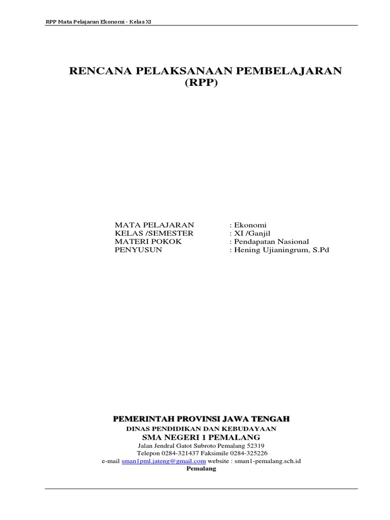 RPP 1 Lembar Ekonomi Kelas 11 SMA/MA Semester 1 - antapedia.com