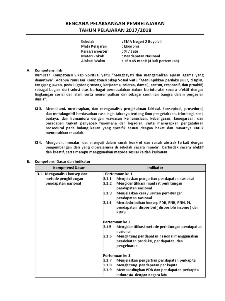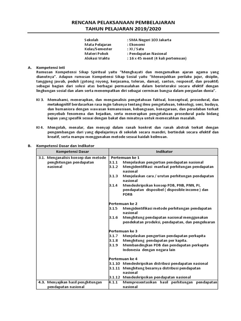 Rpp Kd 3.1. Pendapatan Nasional