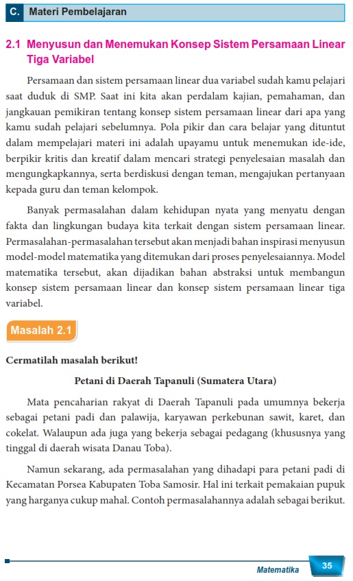 MATEMATIKA DI SMA: BUKU SISWA BAB 2 SISTEM PERSAMAAN LINEAR TIGA …
