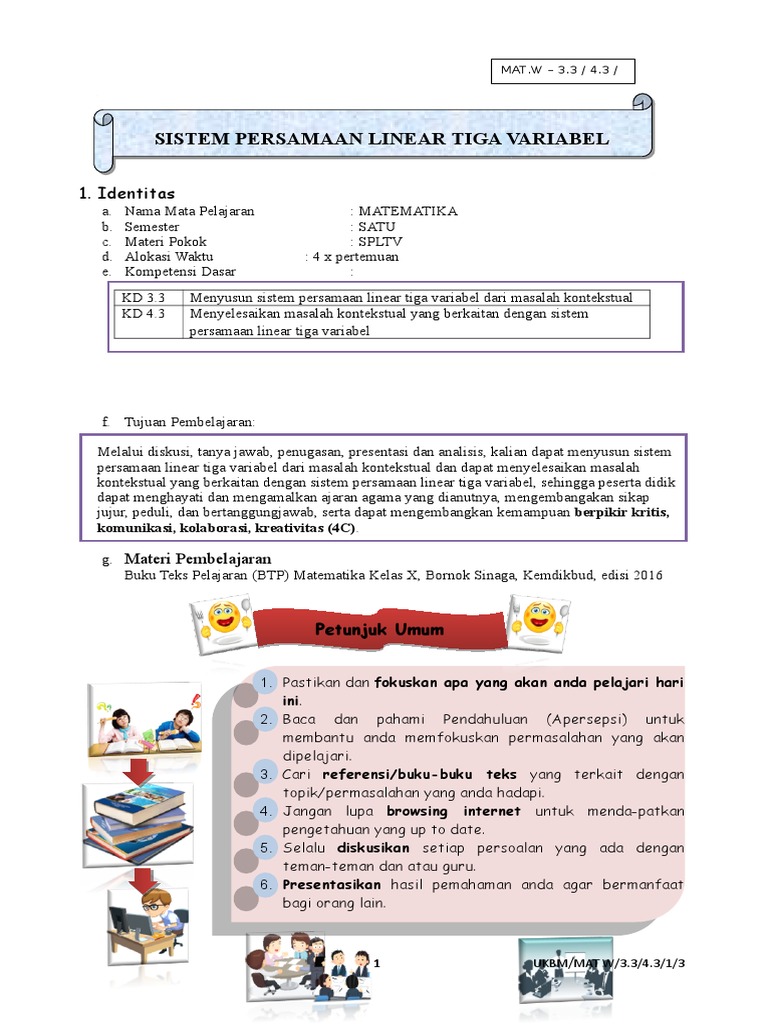 PDF) Modul Sistem Persamaan Linear Tiga Variabel (SPLTV) | Shinta …