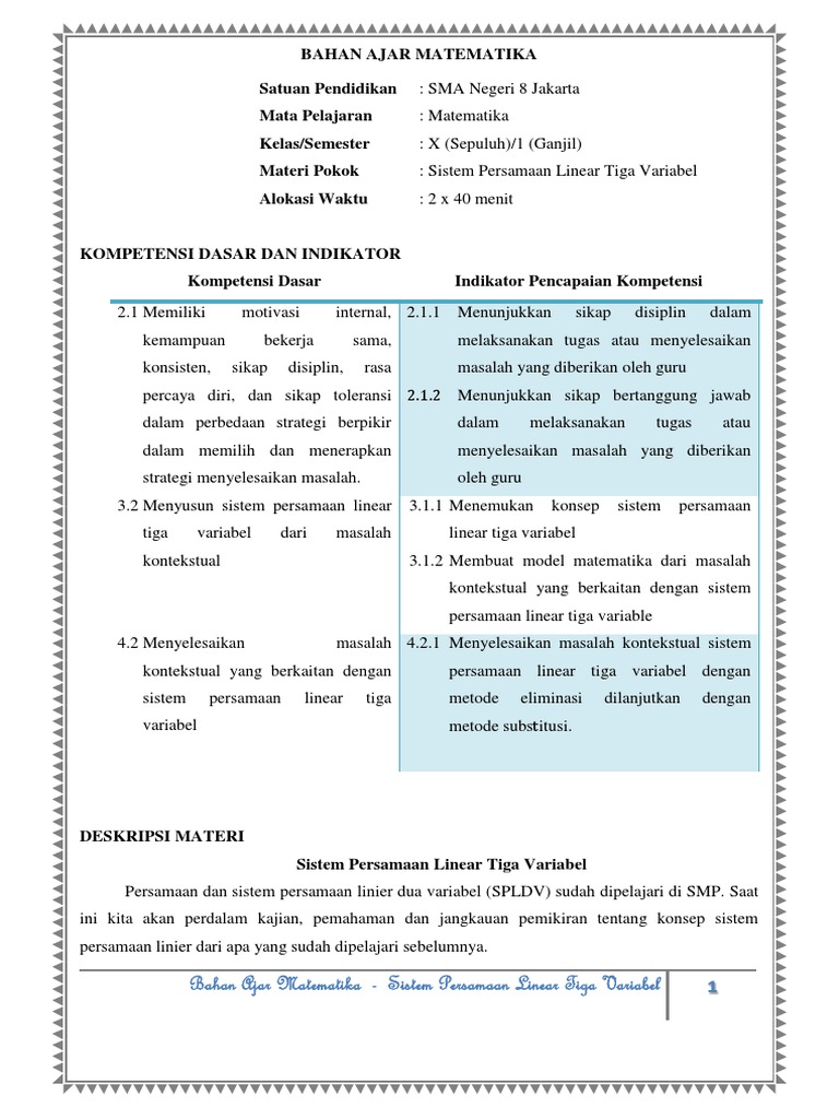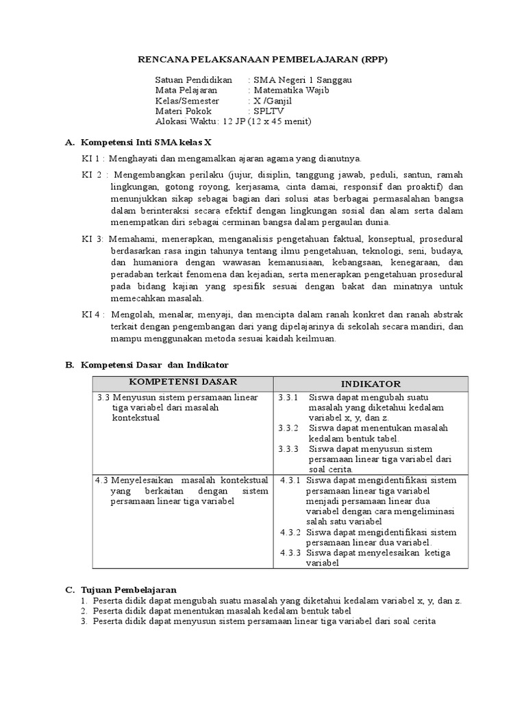 DOC) RPP 2 Sistem Persamaan Linier 3 Variabel | Cempaka Lumentut …