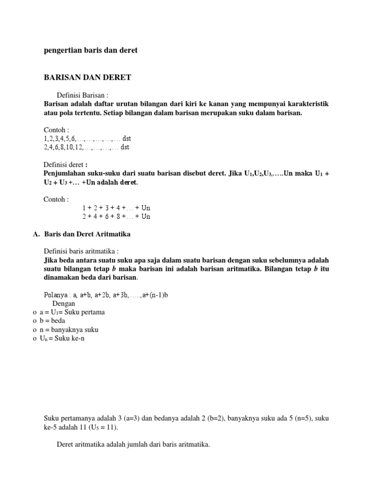 Pengertian Baris Dan Deret