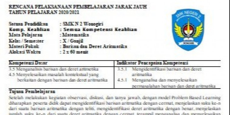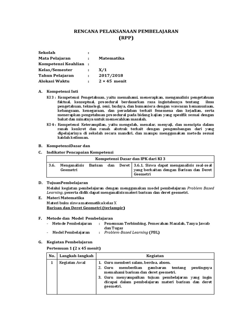 DOC) RPP Barisan dan Deret Aritmatika | rifqi fatimah - Academia.edu