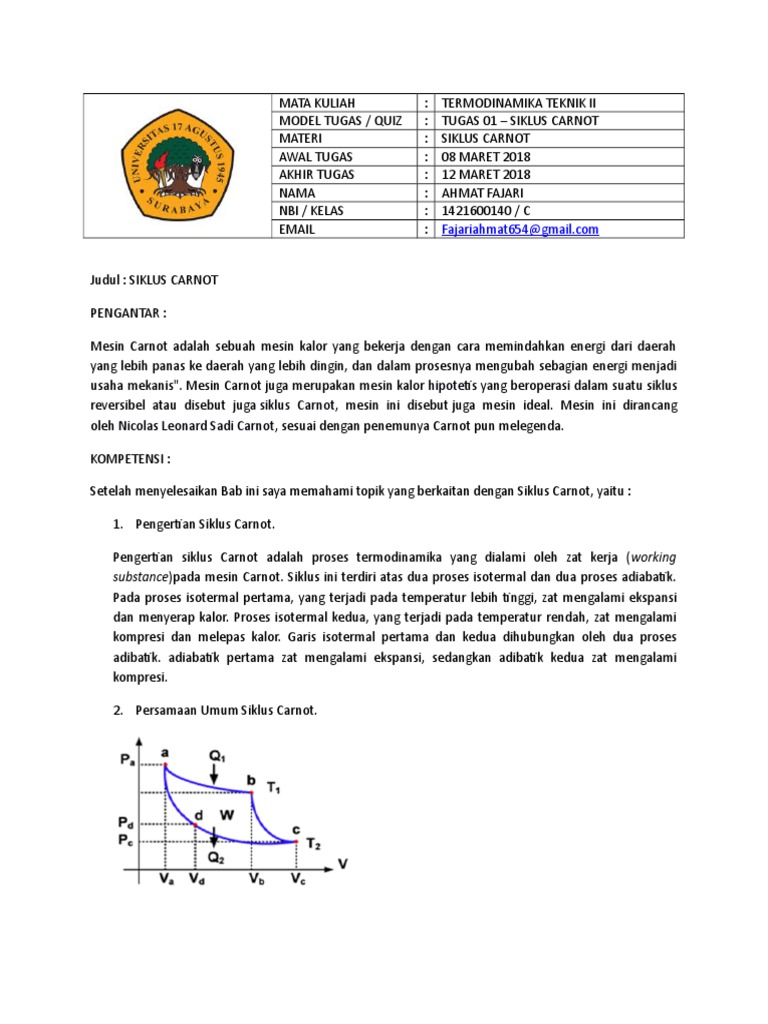 Materi Termodinamika Siklus Carnot Pada Mesin 4 Tak - [DOCX Document]