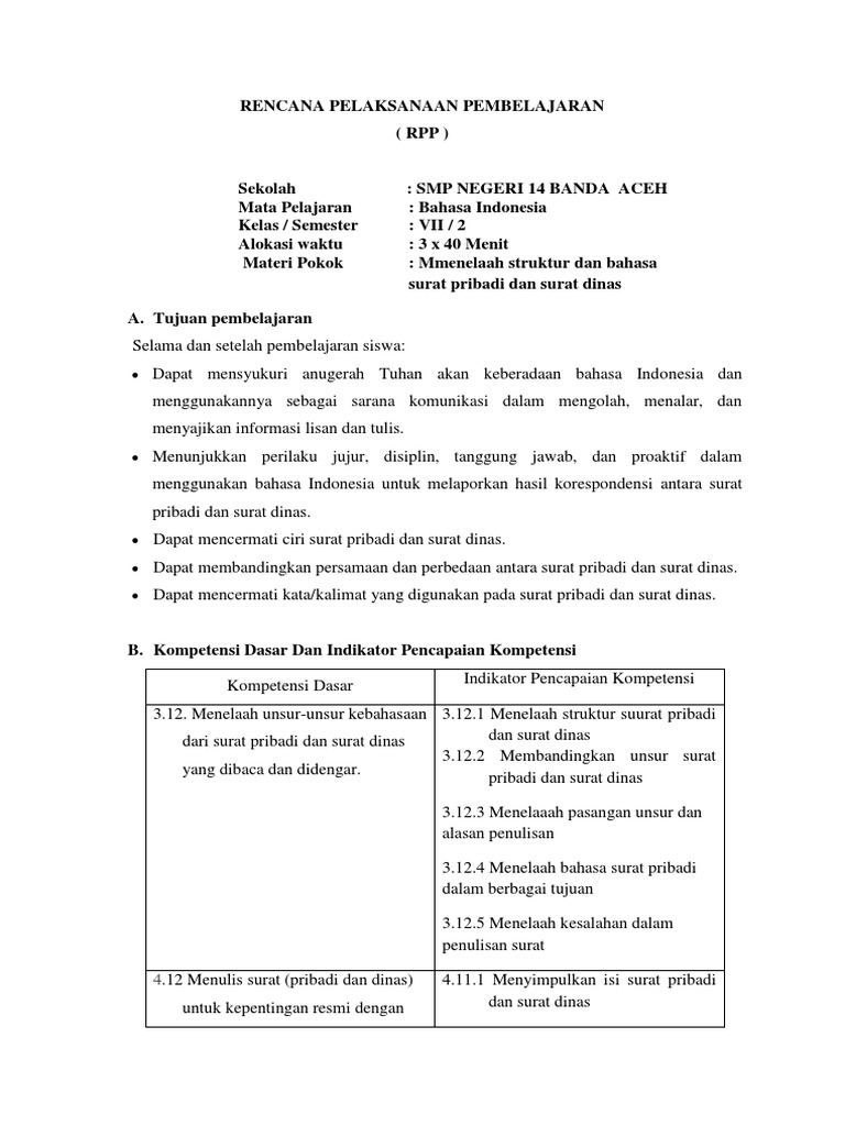 Rpp Surat Pribadi Dan Surat Dinas K13 - Kumpulan Surat Penting