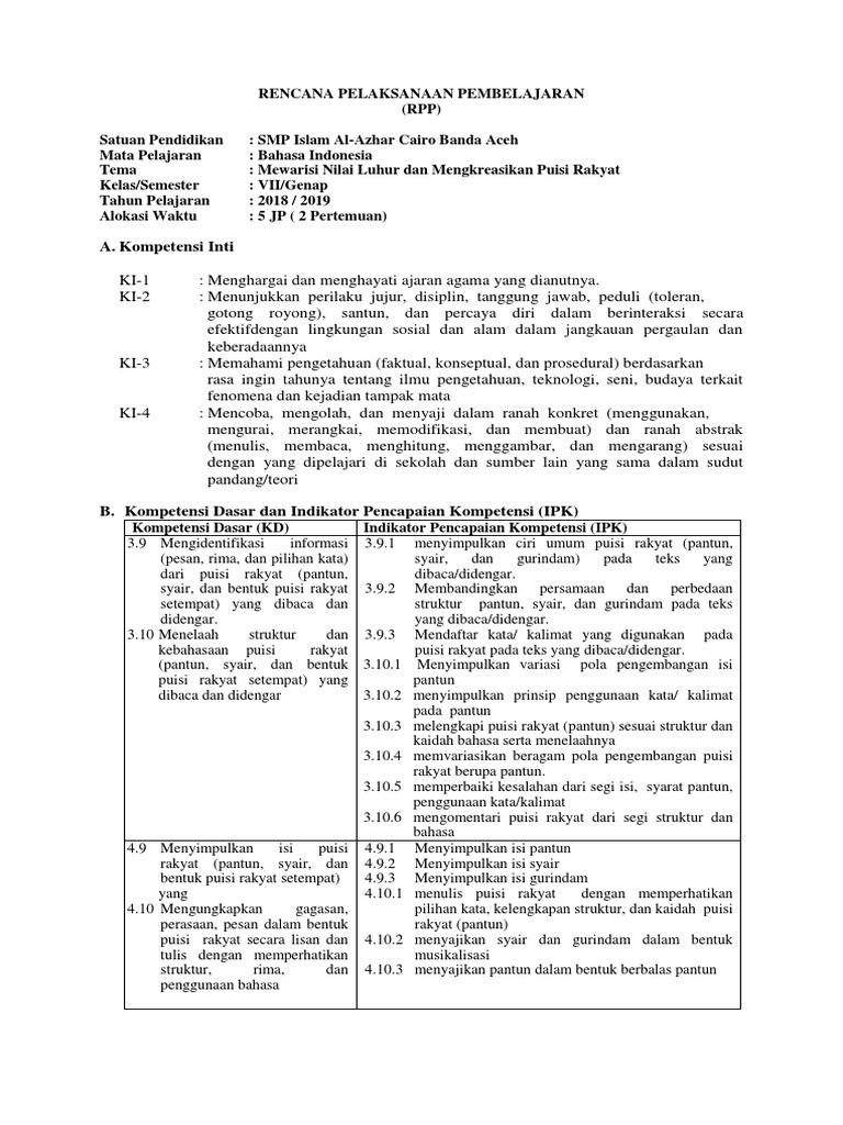 Rpp Kd 3.9 Dan Kd 4.9 (puisi Rakyat) [jlkq95j0r3l5]