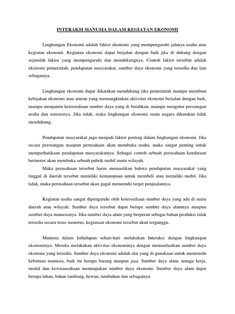 Interaksi Manusia Dalam Kegiatan Ekonomi