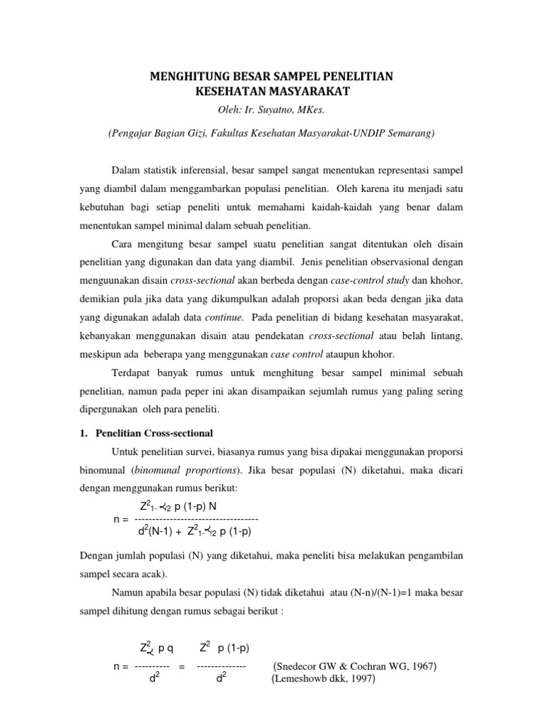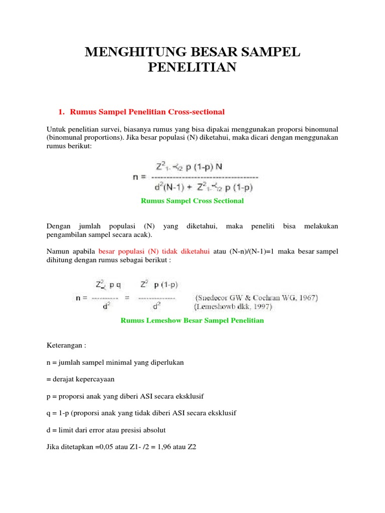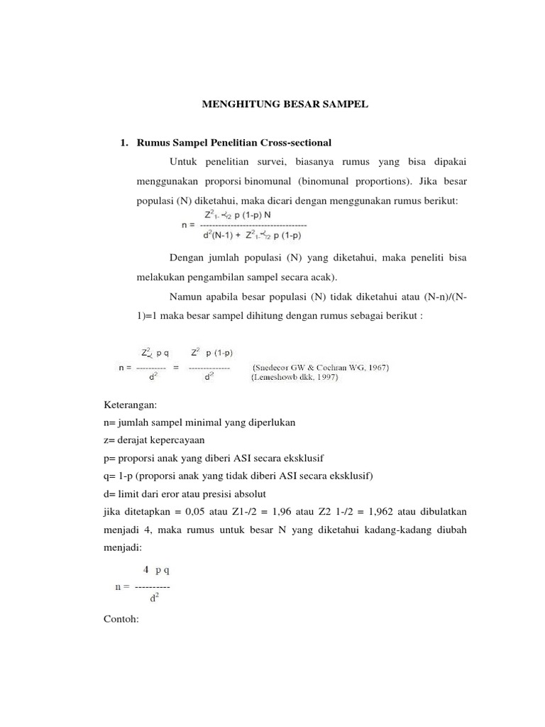 DOC) Rumus Sampel Penelitian Cross-sectional | nunge cha - Academia.edu