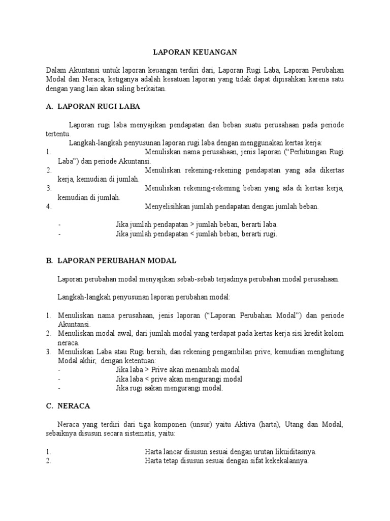 Rumus Modal, Laba Rugi, Neraca - Laporan Keuangan