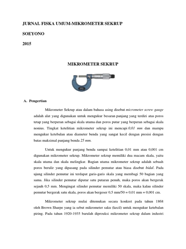 Soeyono Jurnal Fiska Umum Mikrometer Sekrup