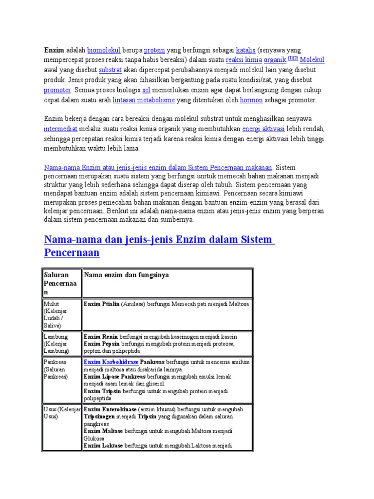 Nama Nama Enzim Dan Fungsinya - Pelajaran Sekolah