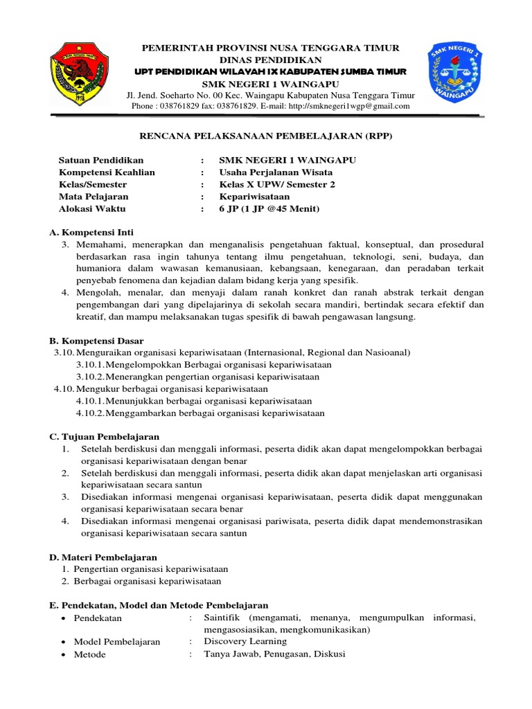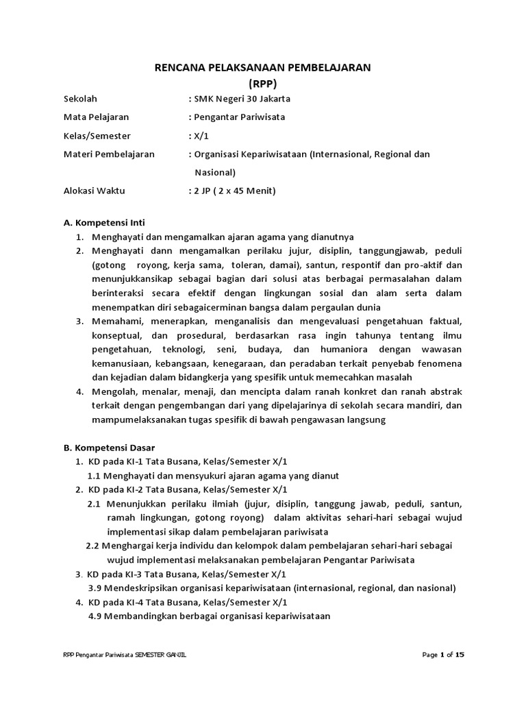 RPP organisasi kepariwisataan
