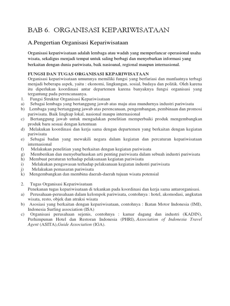 ORGANISASI KEPARIWISATAAN | Pengantar Pariwisata