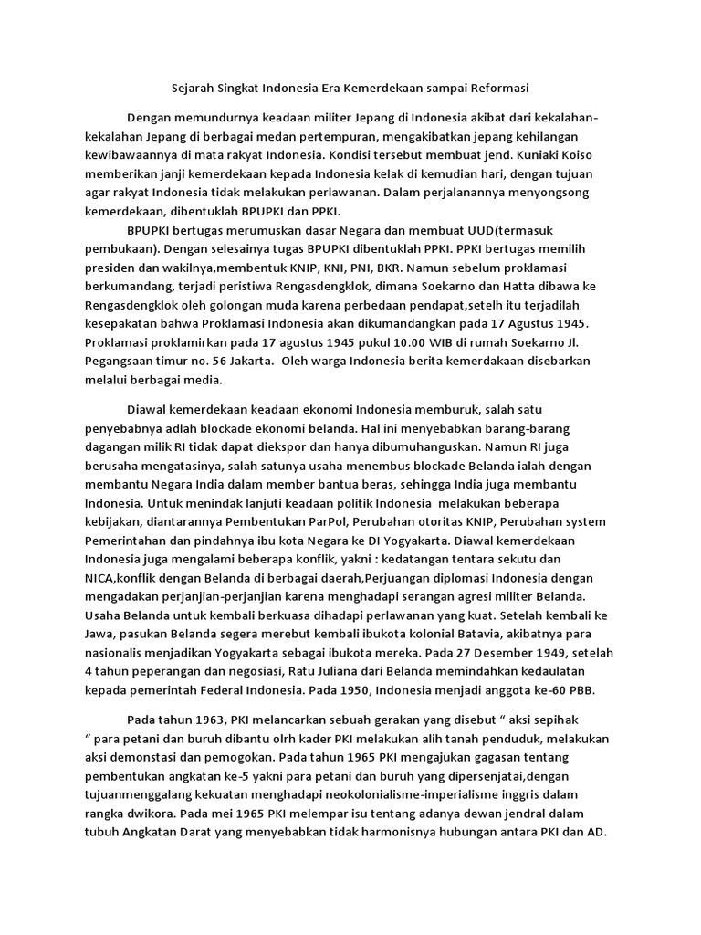 Sejarah Singkat Indonesia Era Kemerdekaan Sampai Reformasi