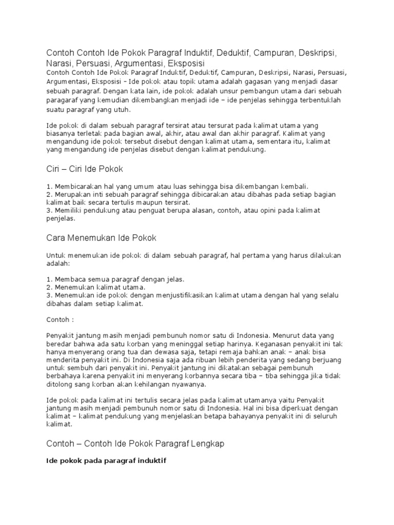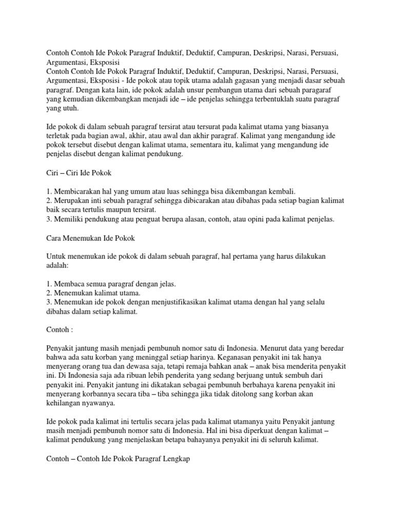 Contoh Contoh Ide Pokok Paragraf Induktif