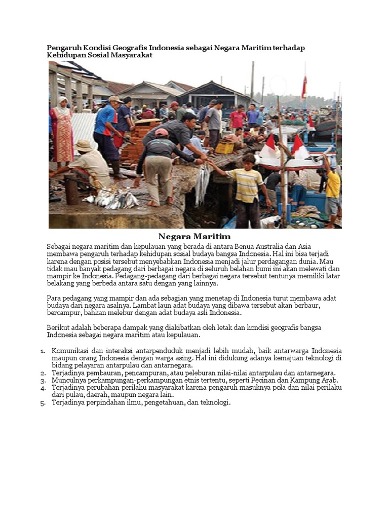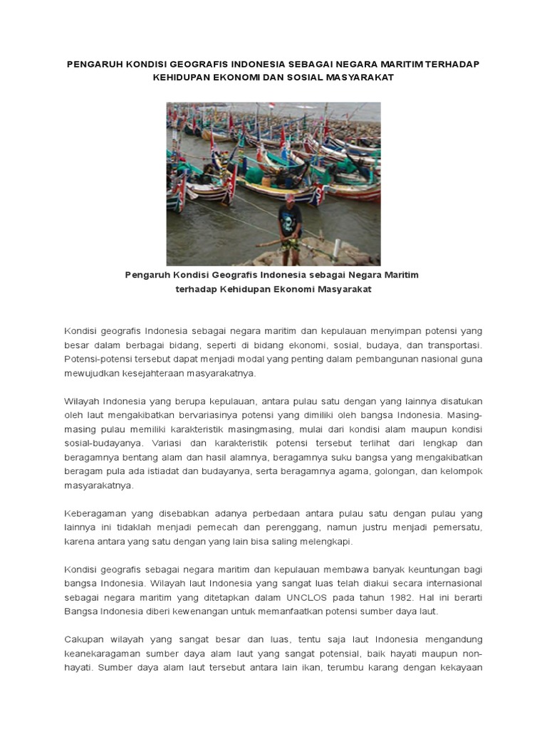 Kliping Pengaruh Kondisi Geografis Bangsa Indonesia Sebagai Negara Maritim Terhadap Kehidupan Ekonomi Dan Sosial Masyarakatnya