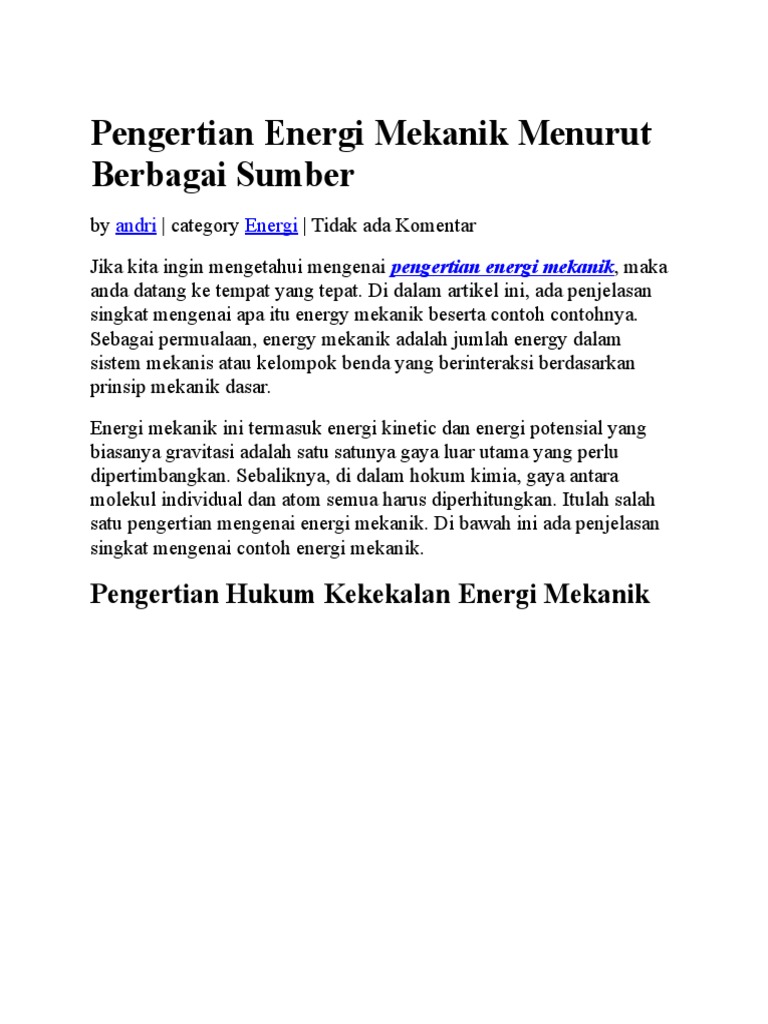 Pengertian Energi Mekanik Menurut Berbagai Sumber