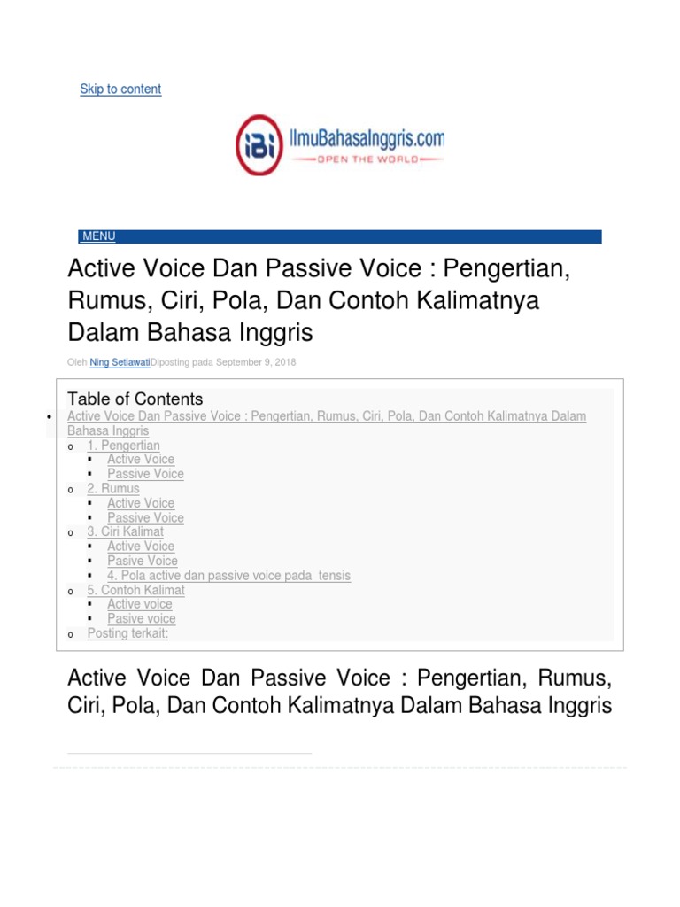 Pengertian, Perbedaan, Rumus Dan Contoh Active & Passive Voice …