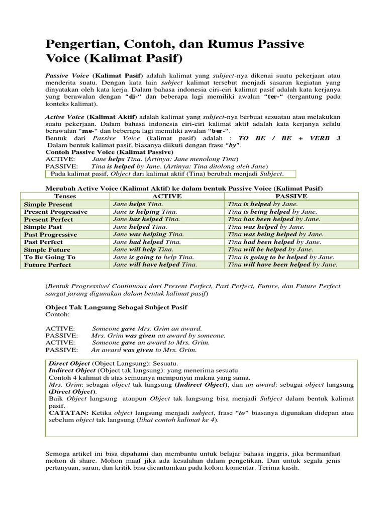 Pengertian Kalimat Pasif (Passive voice) dan Contoh Kalimat …