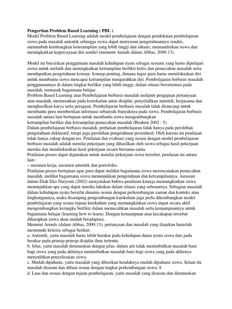 DOC) Problem Based Learning Problem Based Learning 1. PENGERTIAN PROBLEM BASED LEARNING ( PBL | Ennika Ngajiranto - Academia.edu