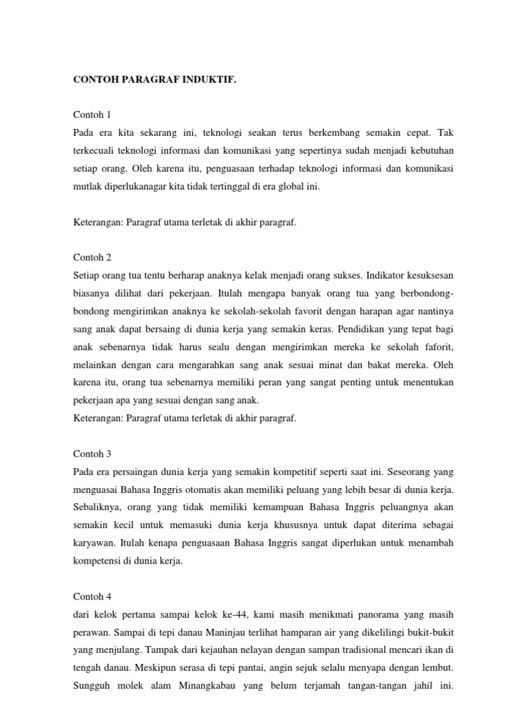 Pengertian Paragraf Induktif Dilengkapi Dengan Contohnya …
