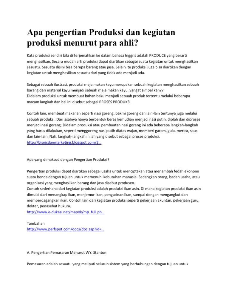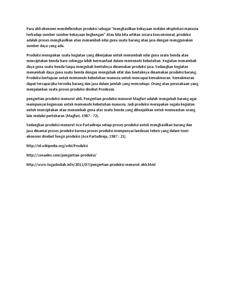 Pengertian Produksi Menurut Para Ahli Tahun 2014 - Tentang Tahun