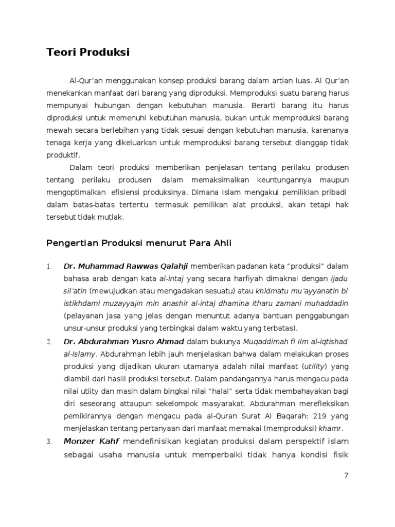 Teori Produksi Syariah Dan Konvensional