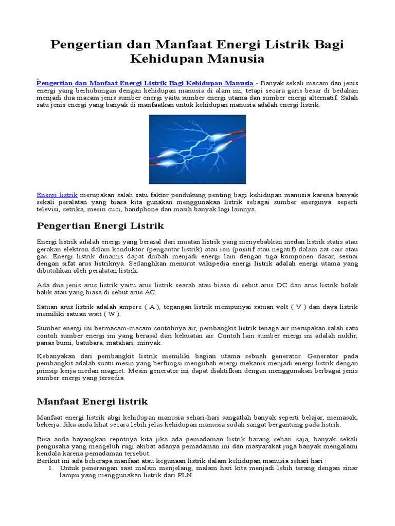 Pengertian Dan Manfaat Energi Listrik Bagi Kehidupan Manusia