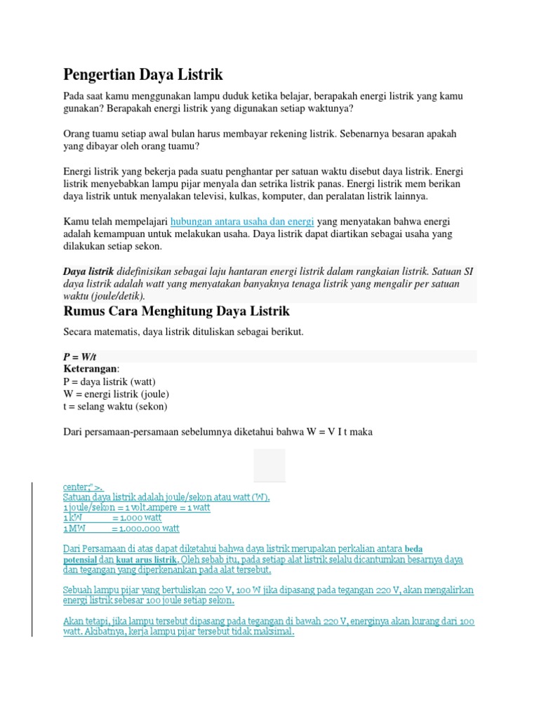 Pengertian Daya Listrik Dan Rumus Untuk Menghitungnya