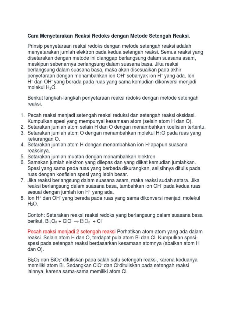 Menyetarakan Reaksi Redoks Metode Setengah Reaksi Dan Perubahan …