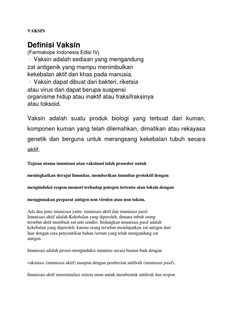 Definisi Vaksin, Imunisasi, Vaksinasi