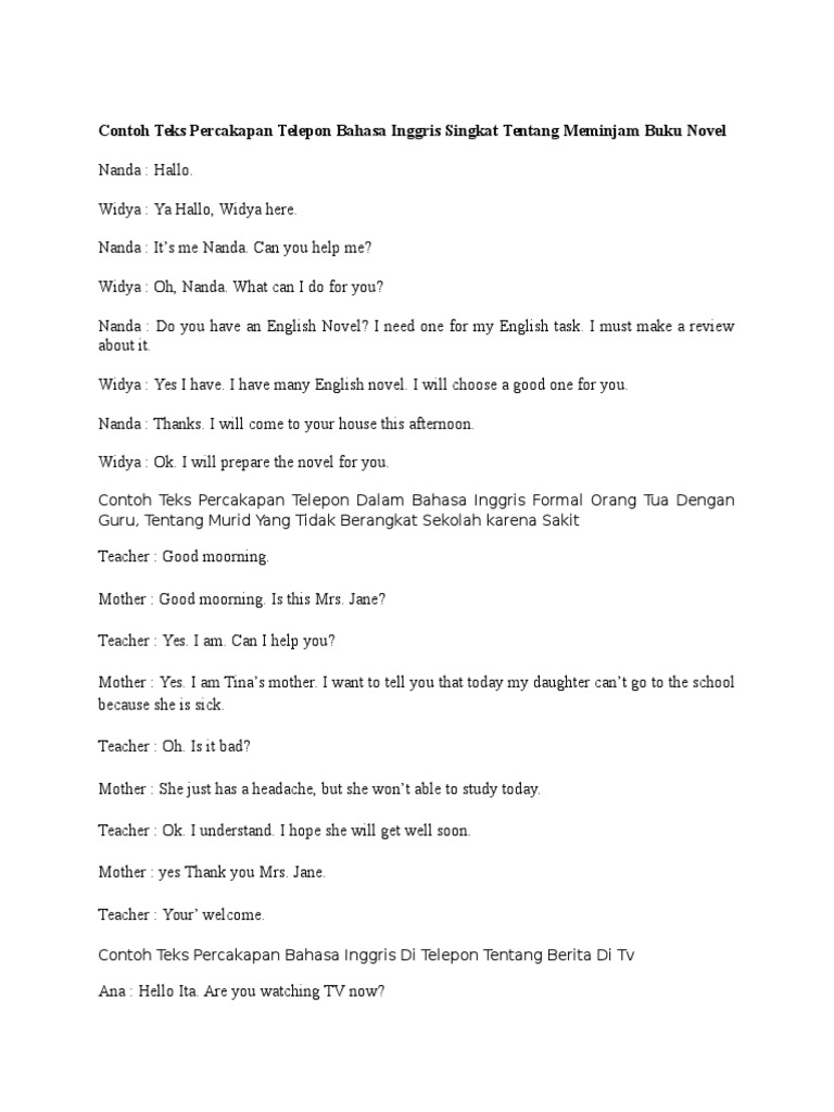 Contoh Teks Percakapan Telepon Bahasa Inggris Singkat Tentang …