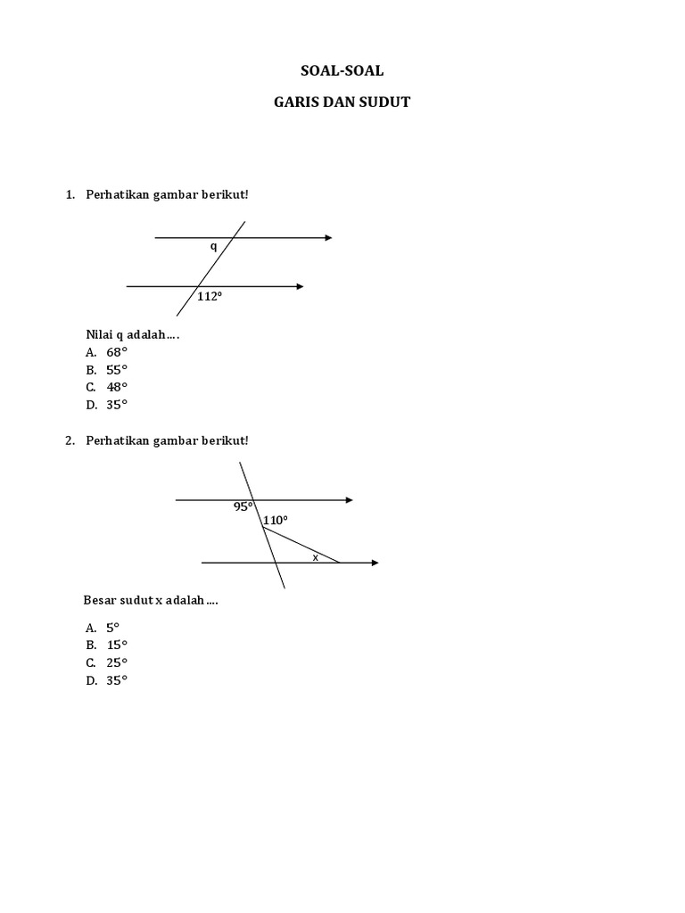 CONTOH SOAL DAN JAWABAN GARIS DAN SUDUT