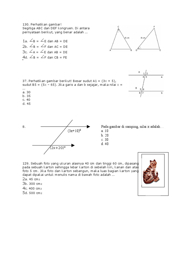 1. Perhatikan gambar berikut.Besar sudut x adalah …a. 30°c. 50b …
