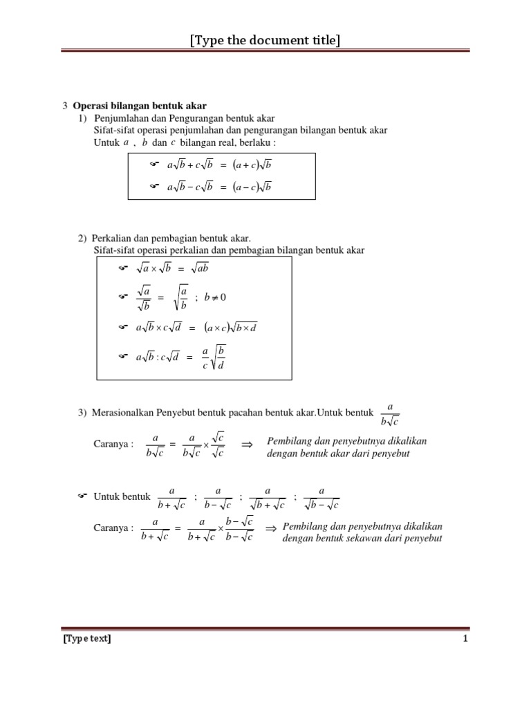 DOC) BAB 5 Bilangan Berpangkat dan Bentuk Akar | Deasyra Syamsudin …