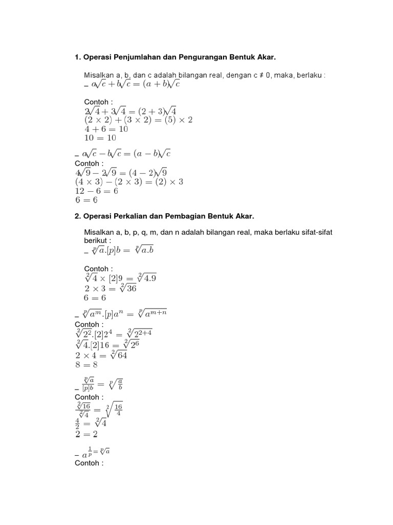 Oparasi Aljabar pada Bentuk Akar beserta Sifat dan Contoh Soalnya …