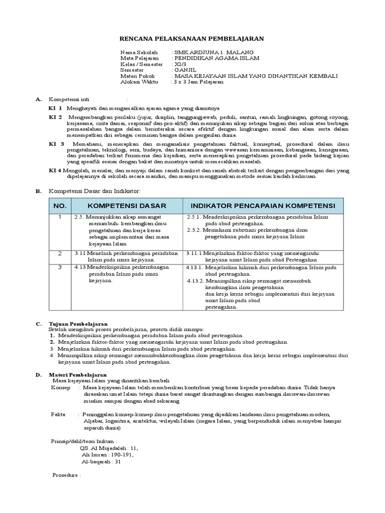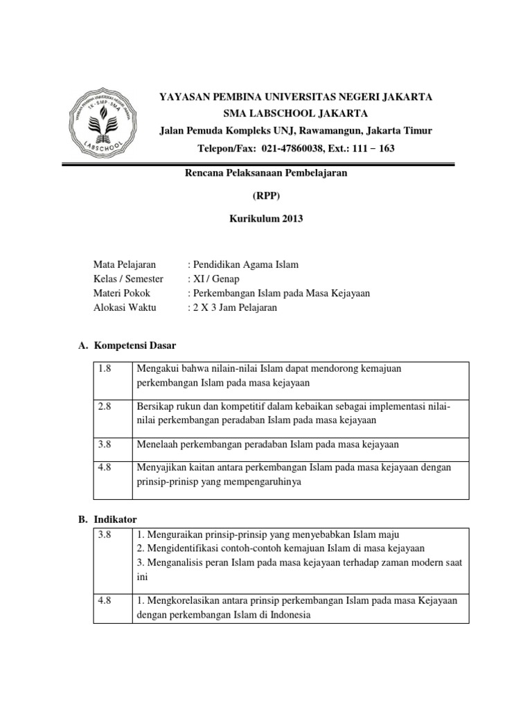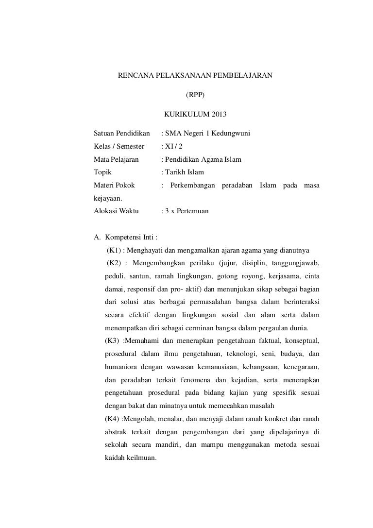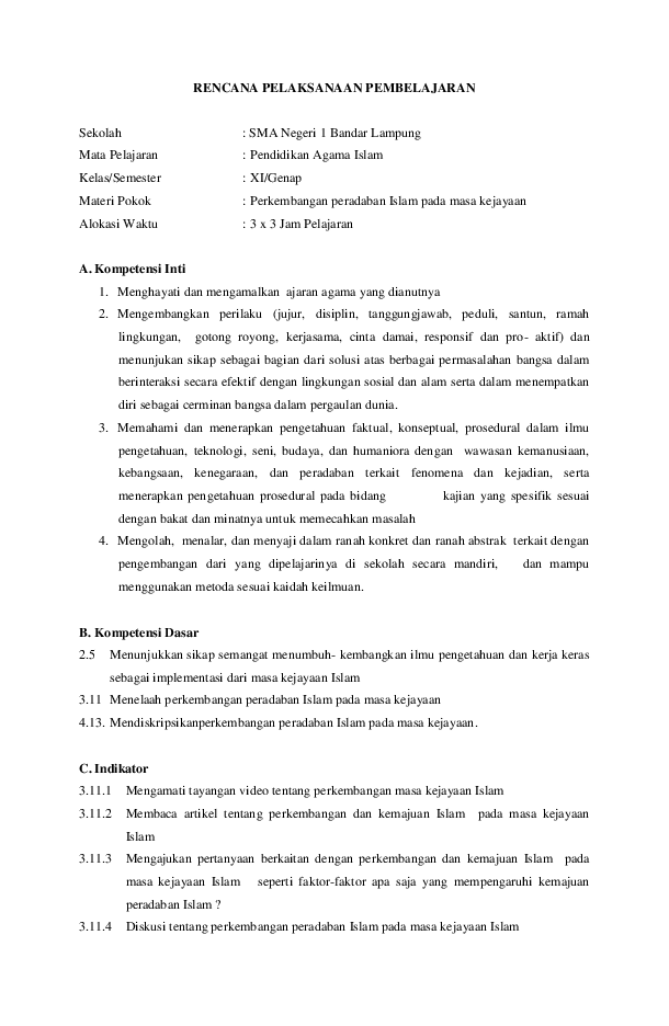 RPP PAI XI Kurikulum 2013 seri 2.11 perkembangan islam masa kejayaan