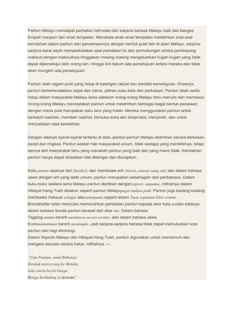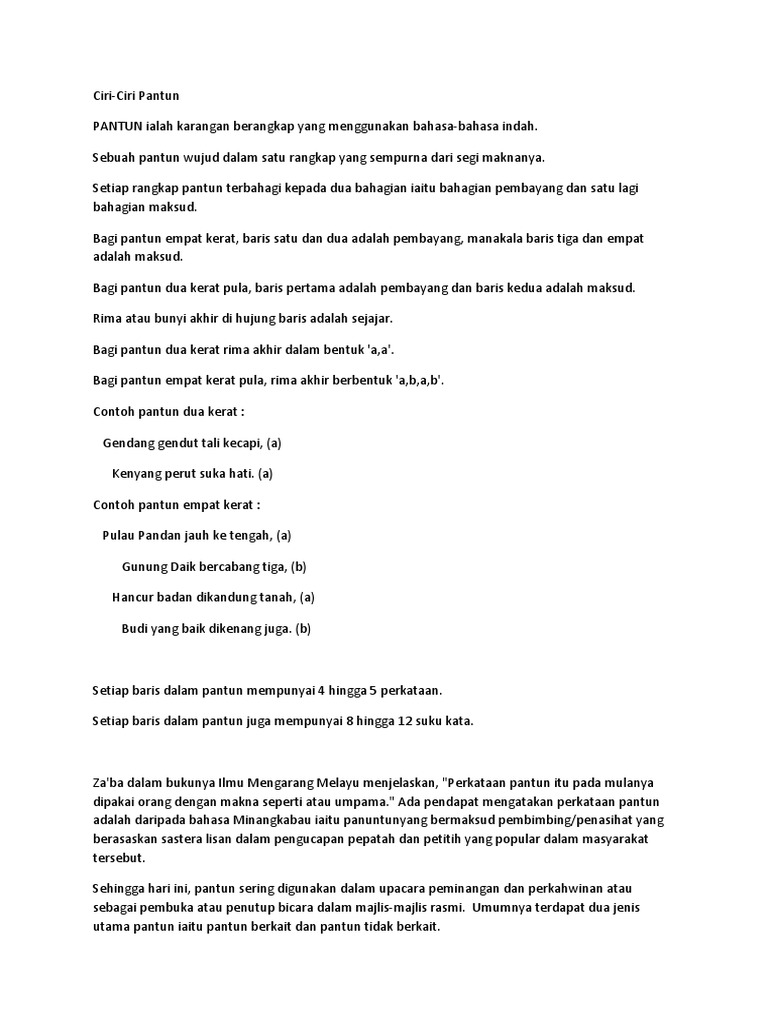 Jika pantun empat keratbaris dua baris pertama ialah pembayang manakala dua | Course Hero