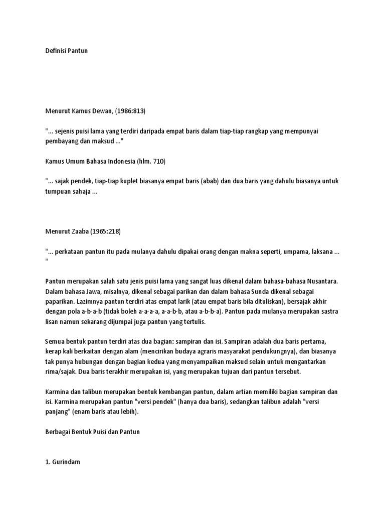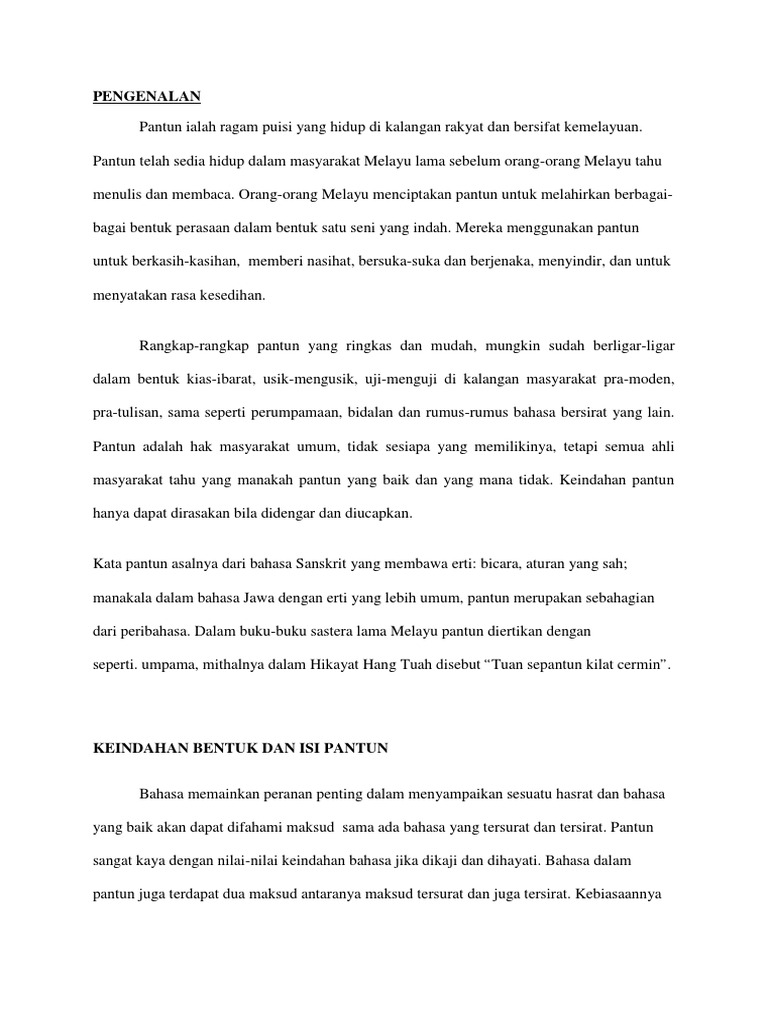 185039103-TUGASAN-KOMSAS-PANTUN.docx - ISI KANDUNGAN Perkara Muka Surat Pendahuluan 2 1 PENGENALAN 3 1.1 Definisi Pantun 4 1.2 Jenis-Jenis Pantun 4 i | Course Hero