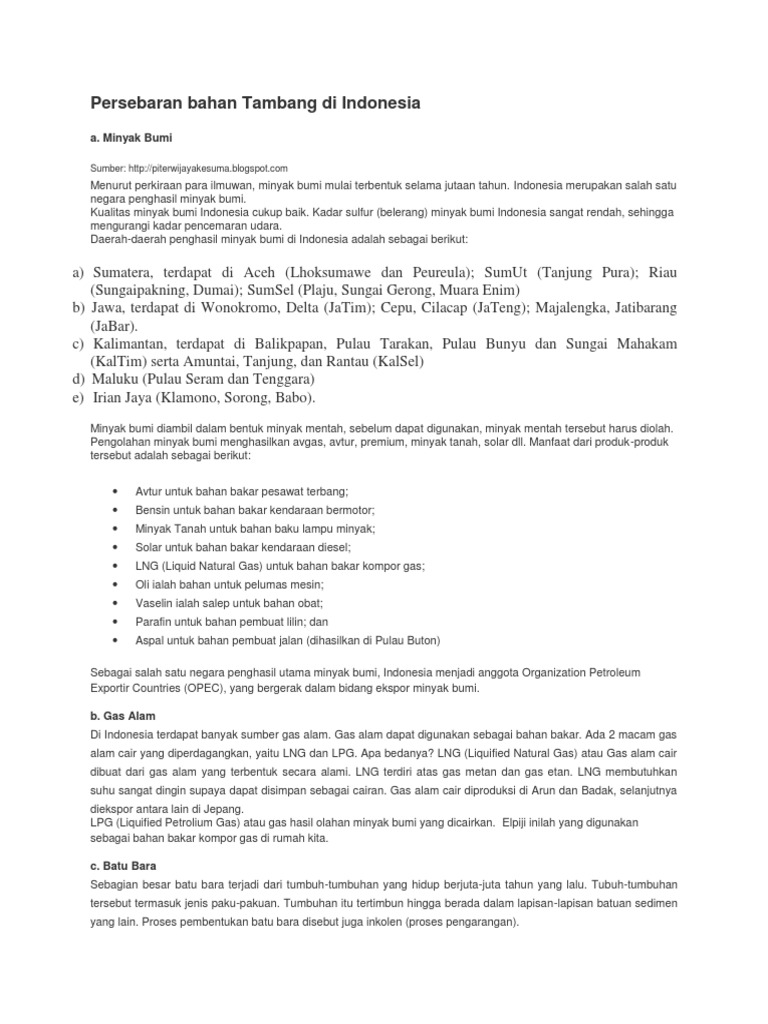 Persebaran Bahan Tambang Di Indonesia