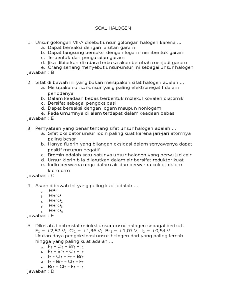 Contoh Soal Kimia Unsur Halogen - Guru Paud