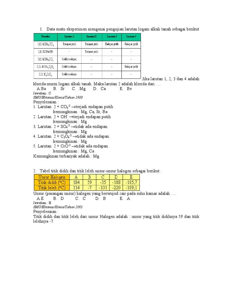 Contoh Soal Alkali Tanah Beserta Jawabannya - Barisan Contoh