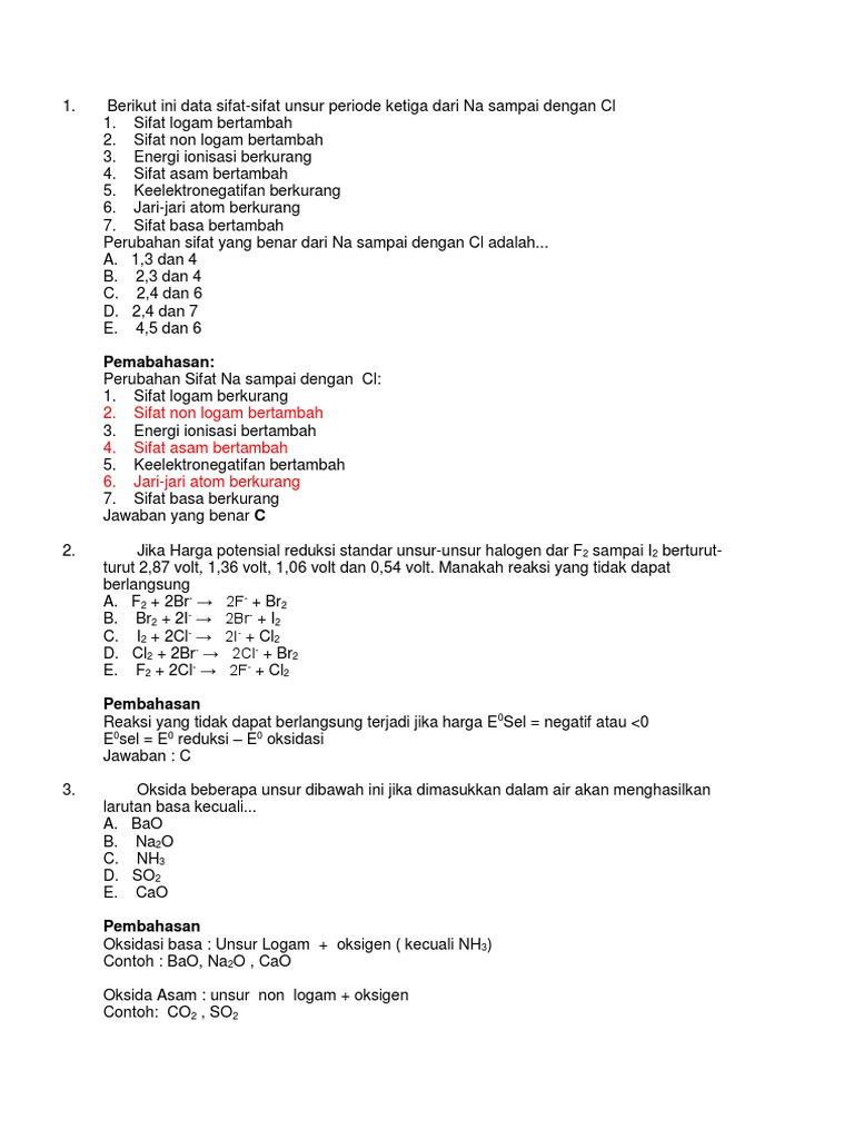 Contoh Soal Kimia Unsur Kelas 12 - Guru Paud