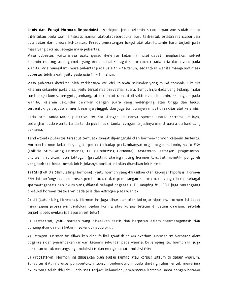 Jenis Dan Fungsi Hormon Reproduksi