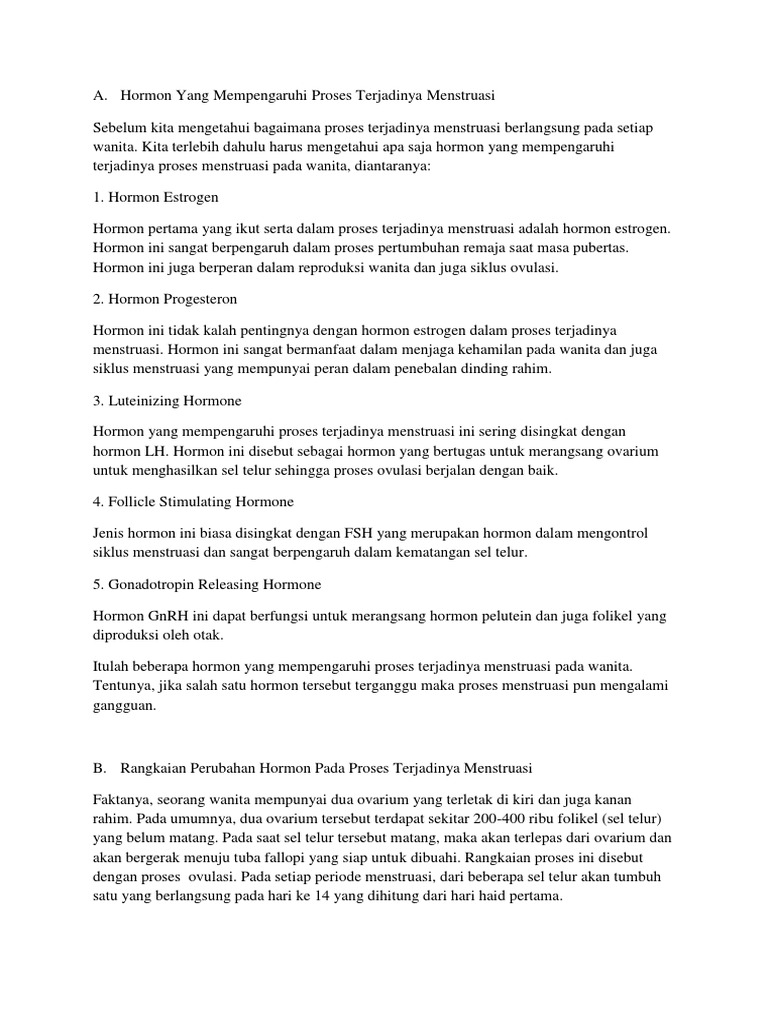 Jelaskan Proses Terjadinya Menstruasi Dan Hormon Yang Berperan …
