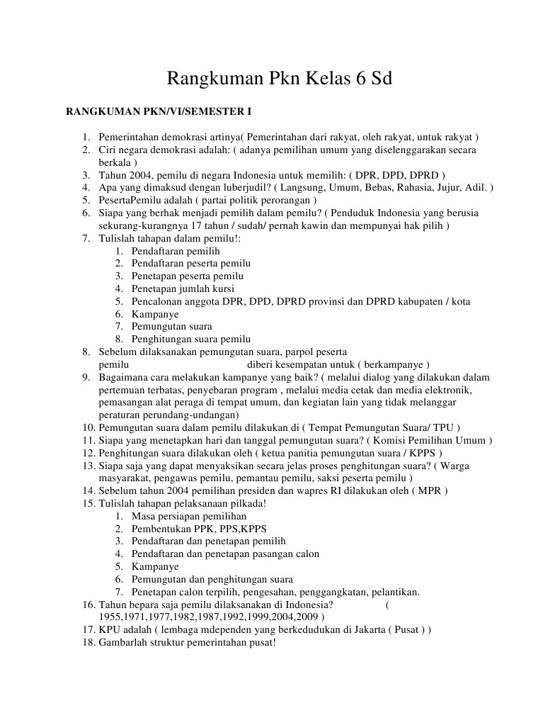 Rangkuman Materi PKn Kelas 6 Semester 1 dan 2 lengkap - Aneka …
