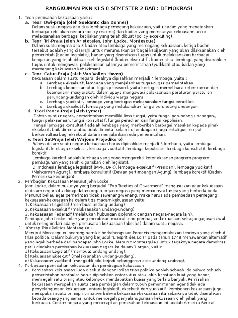 Rangkuman Pkn Kls 8 Semester 2 Bab Demokrasi