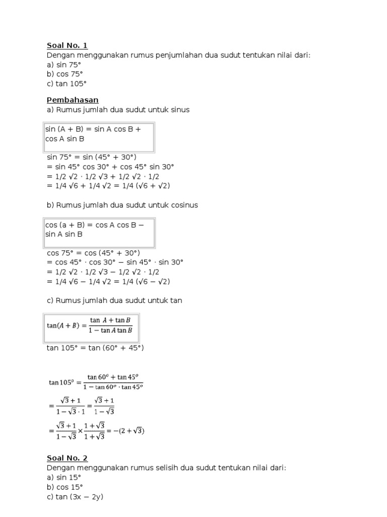 Contoh Soal Trigonometri Jumlah Dan Selisih Dua Sudut - Dapatkan Contoh