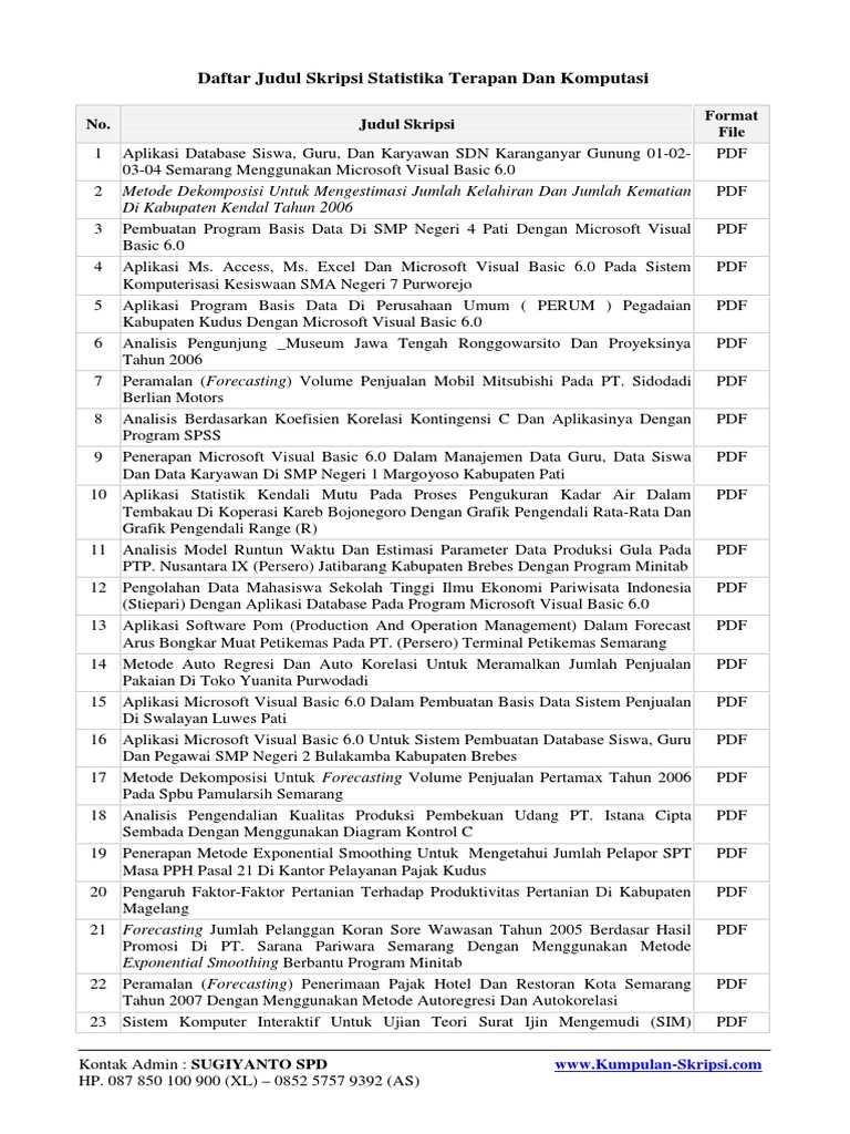 Jual Kumpulan Skripsi Lengkap Jurusan STATISTIKA File Ms Words + …